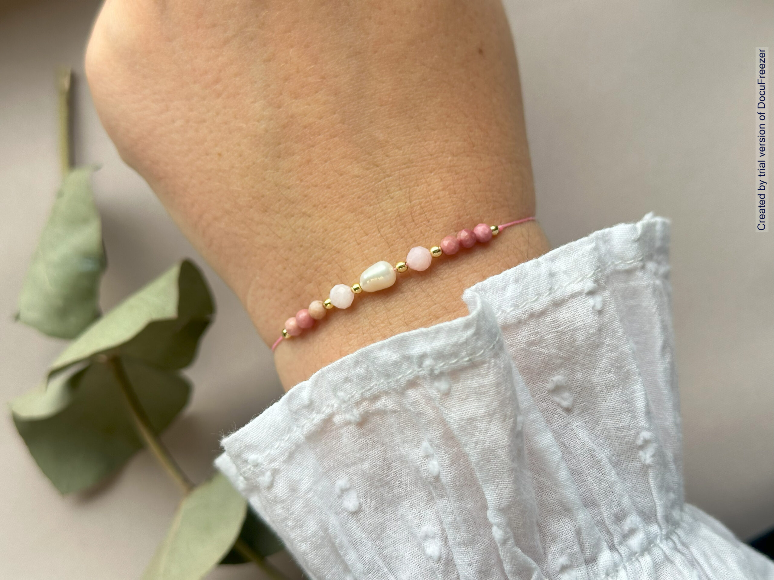 Napisz pierwszą opinię o „Bransoletka z rodonitem, kwarcem różowym i perełką na wytrzymałej nitce – idealna na Dzień Matki”